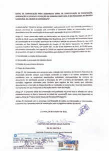 Edital de Convocação para Assembleia Geral da Associação “Projeto Social Vassoural”