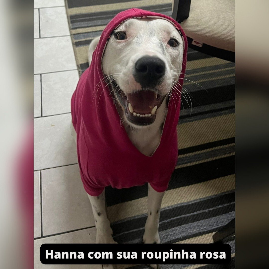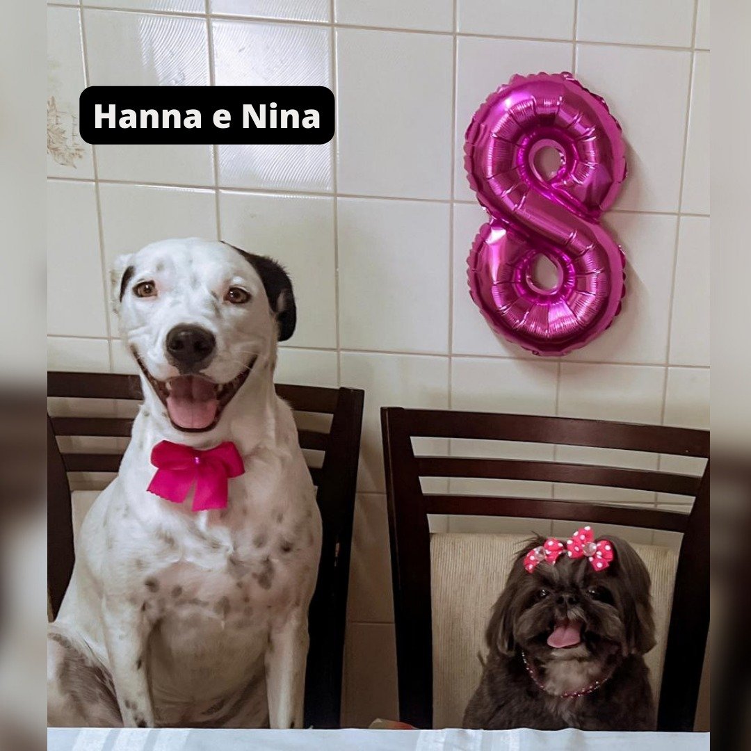 Além da Nina, cuidamos há um ano da Hanna, uma cadelinha que ficava na rua e que acabou nos conquistando também. As duas amam brincar juntas. Elas são a alegria da nossa casa e fazemos de tudo por elas.”