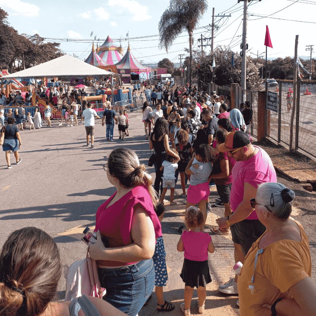 Respeitável público, o show já vai começar! O primeiro espetáculo do “Circo da Tv” na 59ª Festa da Uva e 11ª Festa do Vinho de Vinhedo está prestes a começar. A equipe de reportagem do Social Vinhedo está presente no local neste sábado, dia 25, e registrou uma longa fila com muitas famílias para apreciar o show.