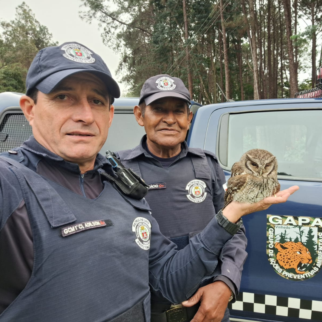 Uma coruja com a asa aparentemente fraturada foi resgatada pela equipe do GAPA (Grupo de Apoio de Proteção Ambiental) da Guarda Civil Municipal de Vinhedo, na manhã desta terça-feira, dia 5, em uma residência localizada na Estrada da Fazenda Santana.