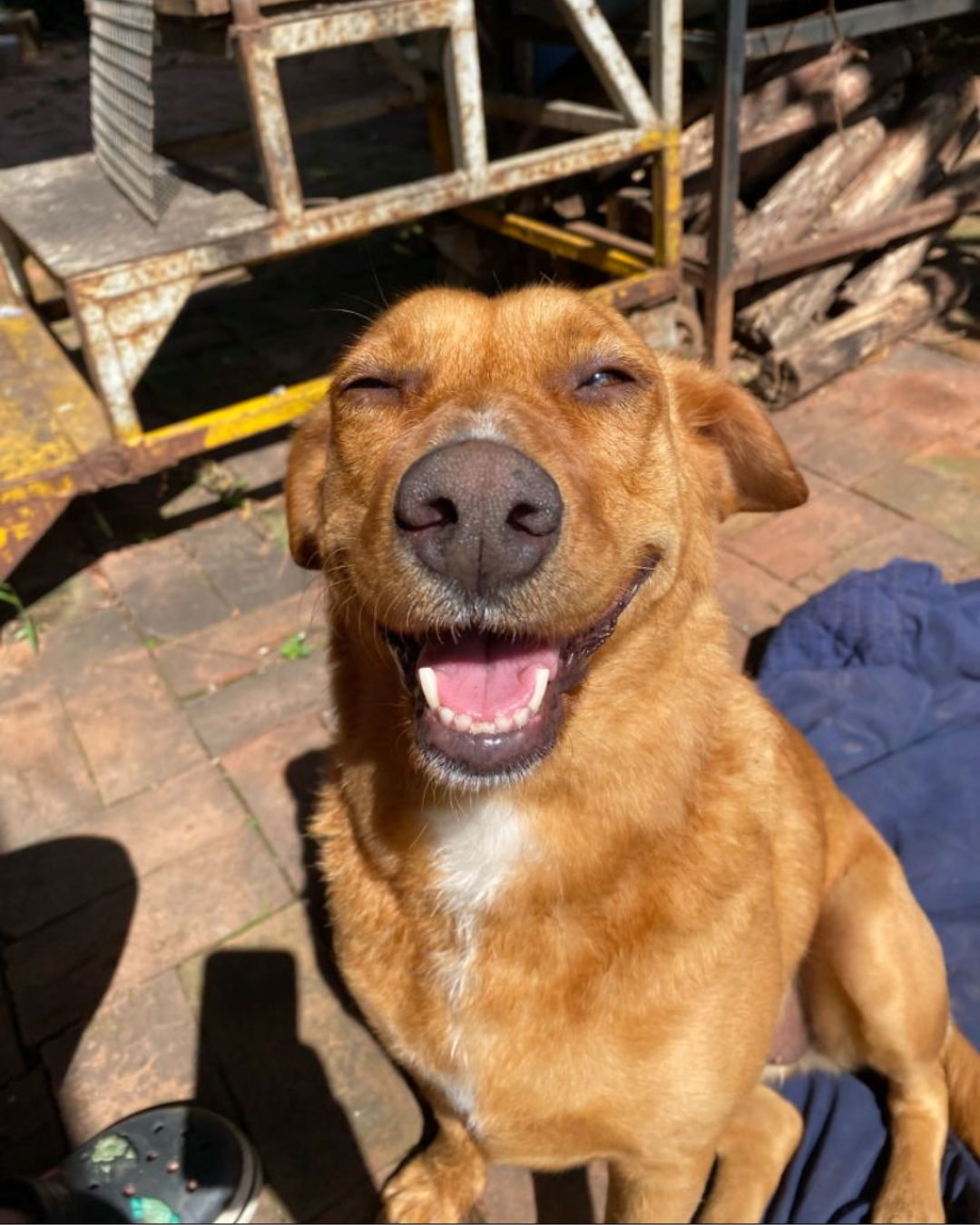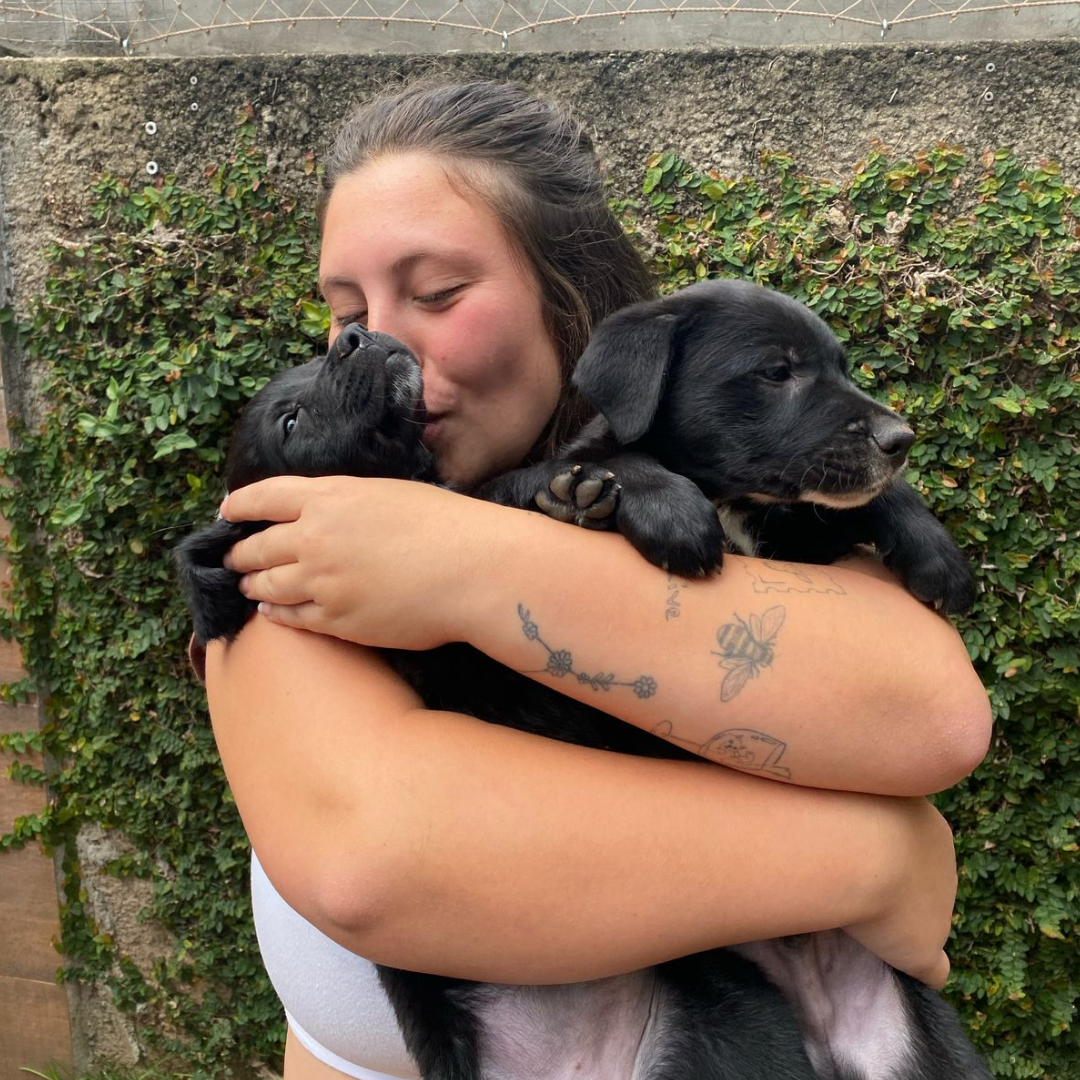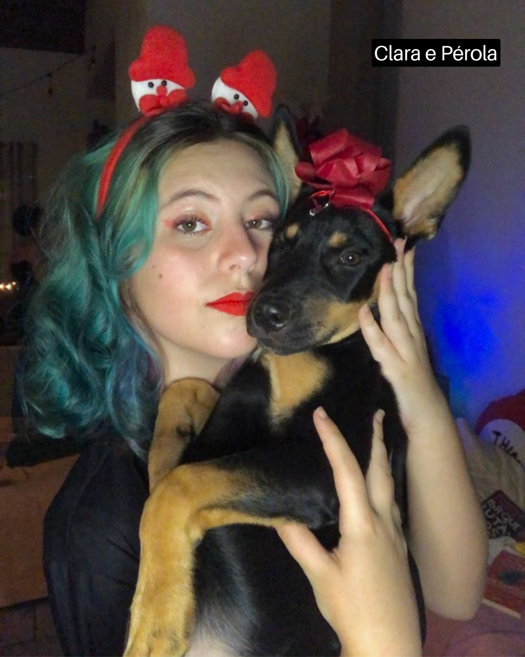 Desde pequena, sempre fui apaixonada por animais, tanto que hoje estudo Medicina Veterinária e dedico grande parte da minha vida ao cuidado com eles. Tive a sorte de crescer ao lado de cachorras que foram minhas companheiras por muitos anos, e quando elas se foram, percebi que o vazio era grande demais para ser ignorado. Foi então que adotei o Soluço e a Pérola, e conheci a Maria Eugênia, uma cadelinha adulta que vi pela internet. Foi a primeira vez que adotei um animal adulto. Algo nela me tocou profundamente, senti que era ela. Foi amor à primeira vista.