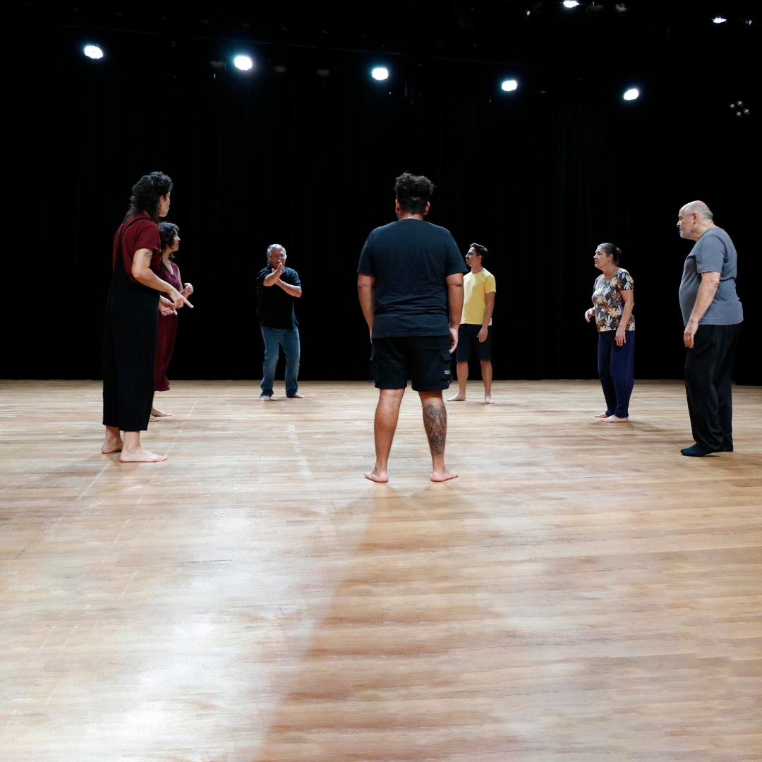 A oficina propõe uma imersão em exercícios práticos de improvisação coletiva e composição de cena. O objetivo é abrir espaço para reflexões profundas sobre como aprofundar temas e propostas estéticas, incentivando um diálogo direto com os anseios artísticos de cada participante e do grupo como um todo.