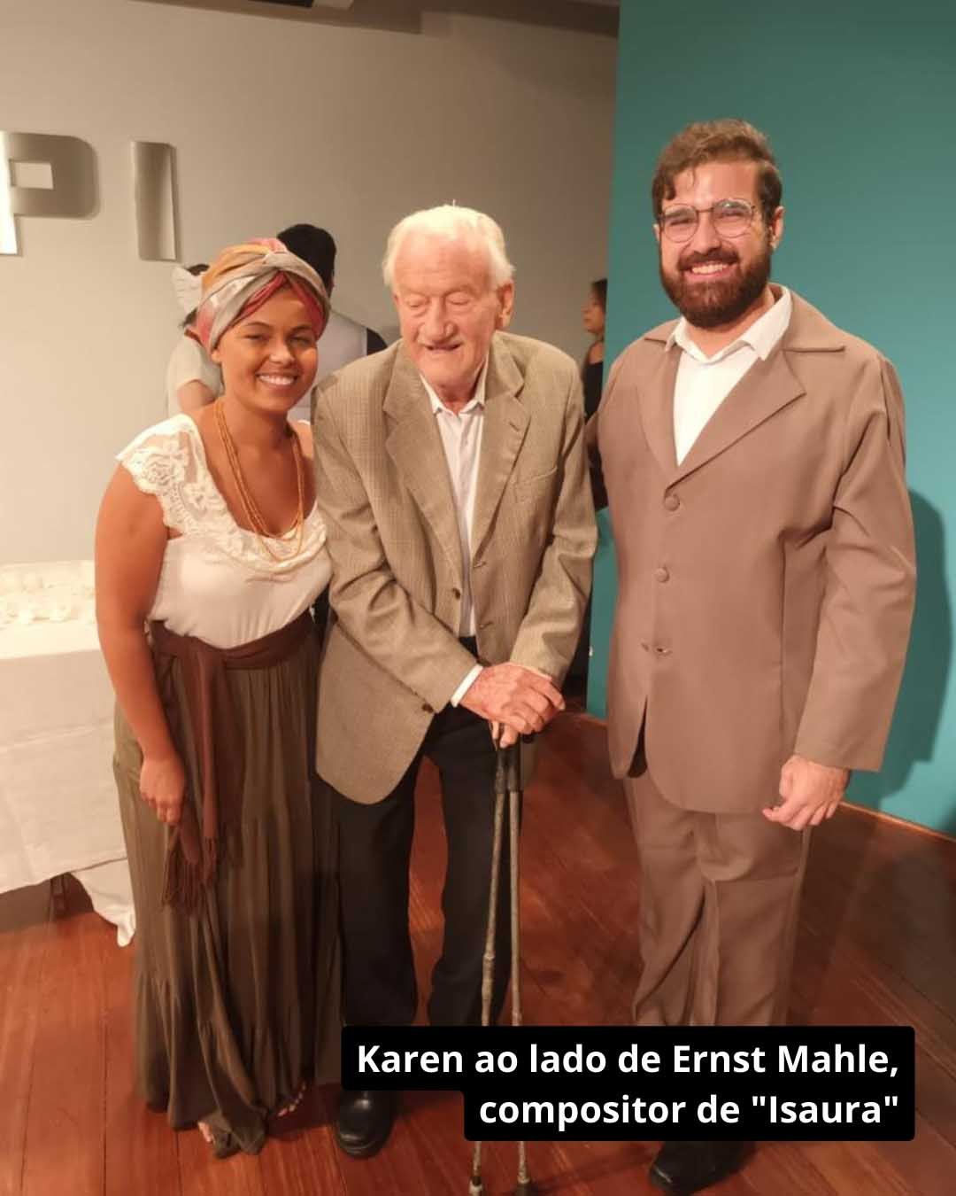 Uma das conquistas a qual Karen tem muito orgulho é a sua recente contratação na Associação Ernst Mahle, de um renomado compositor brasileiro, em que interpretam a ópera “Isaura”, que retrata a história da escrava.