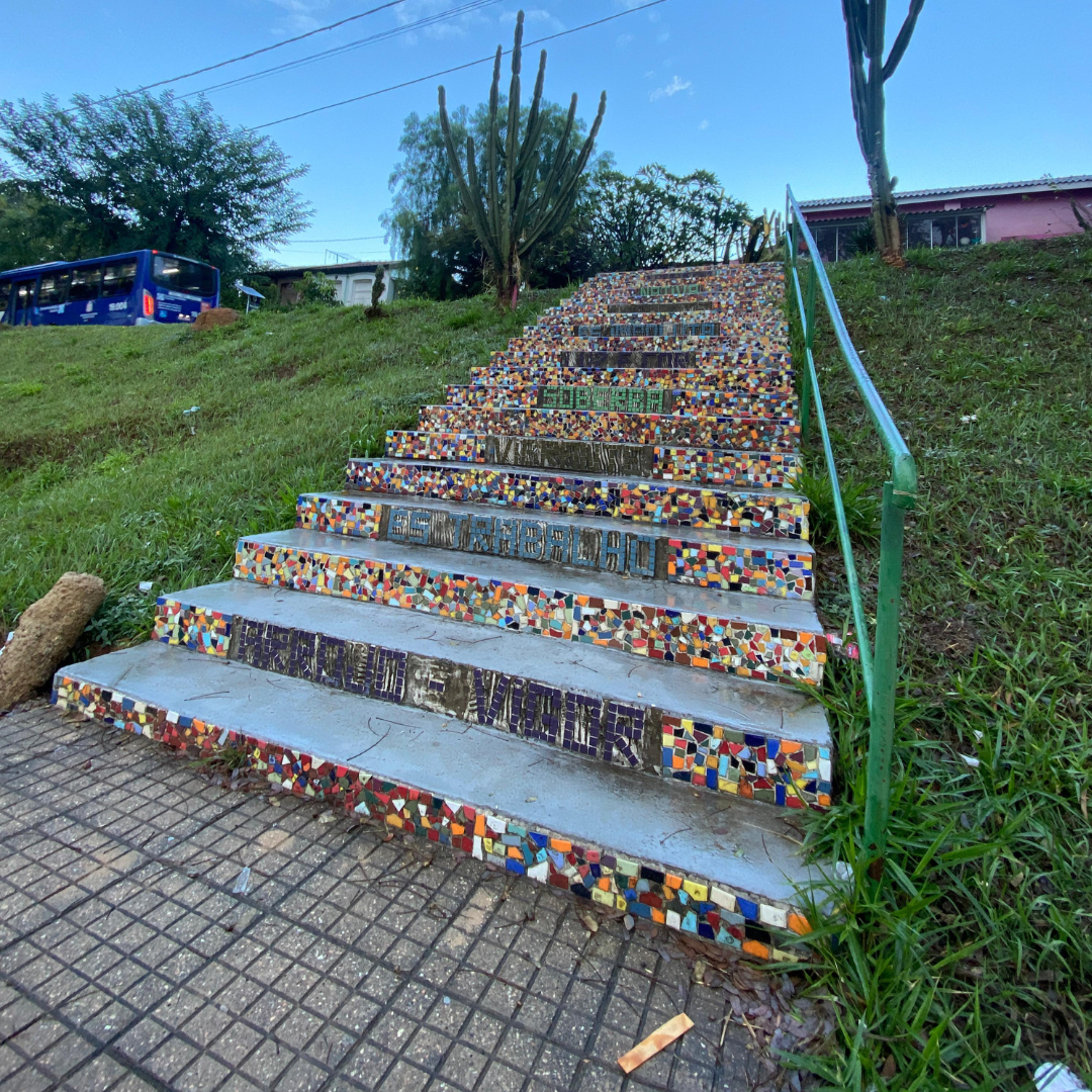 – A escadaria é revestida com pastilhas coloridas e doadas pela empresa Jatobá;